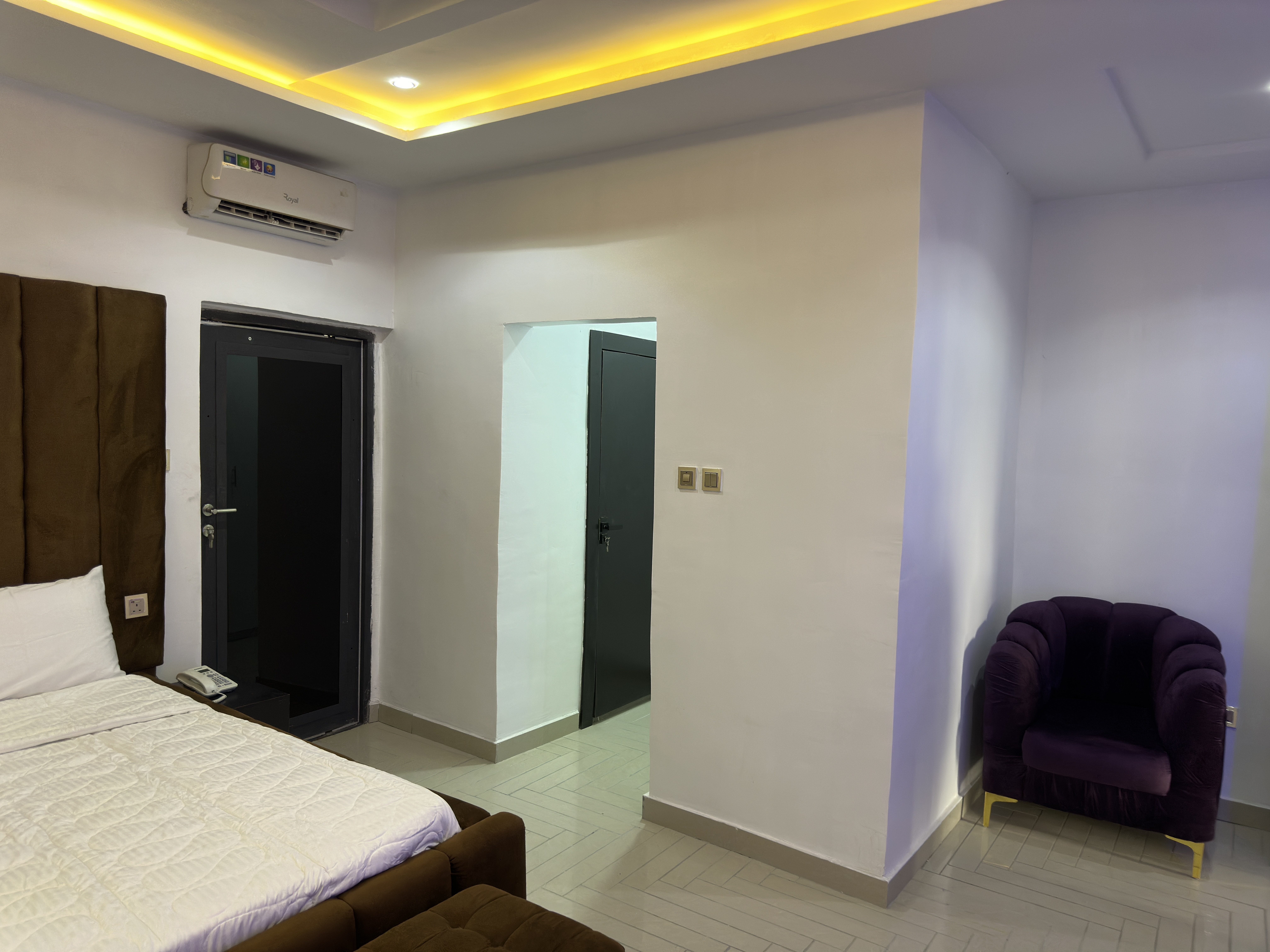 Our Self Catering Suite offer a cozy parlor, a kitchen, a bed, mordern bathroom, TV, fridge, AC, seating area, complimentary breakfast, and complimentary access to the swimming pool and gym.